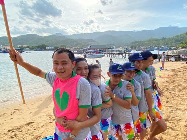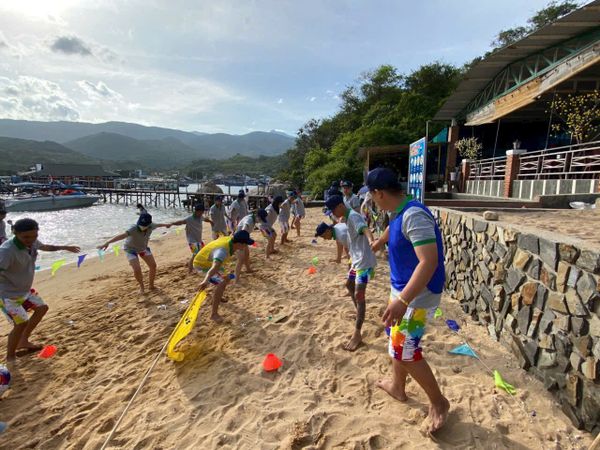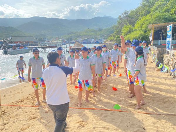 Một trong những điểm nhấn đáng nhớ của chuyến đi là chương trình team building sôi động ngay trên bãi biển. Các hoạt động như “Vượt thách thức – Về đích thành công”, “Sóng đồng hành” và “Bước chân đồng đội” đã mang đến nhiều tiếng cười, nhưng trên hết là tinh thần phối hợp, sự tin tưởng và sức mạnh tập thể – những yếu tố then chốt giúp công ty vững bước phát triển.