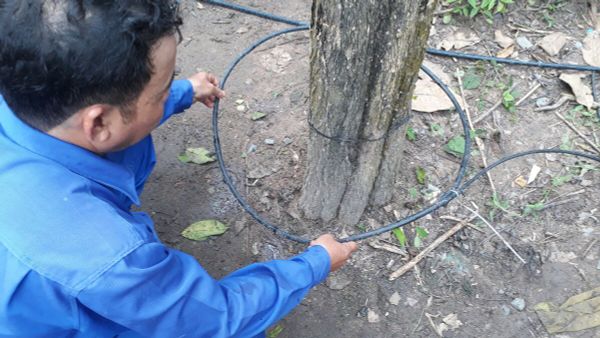 Quy trình tưới cây bằng dây nhỏ giọt quấn gốc.