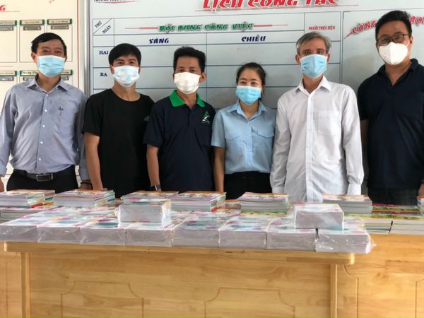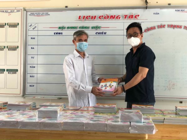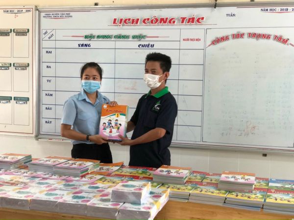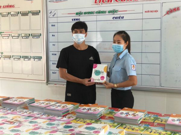 Nhân viên công ty ACNC đến trường THCS Núi Tượng Huyện Tân Phú từ thiện, trao quà cho các em học sinh cấp 1