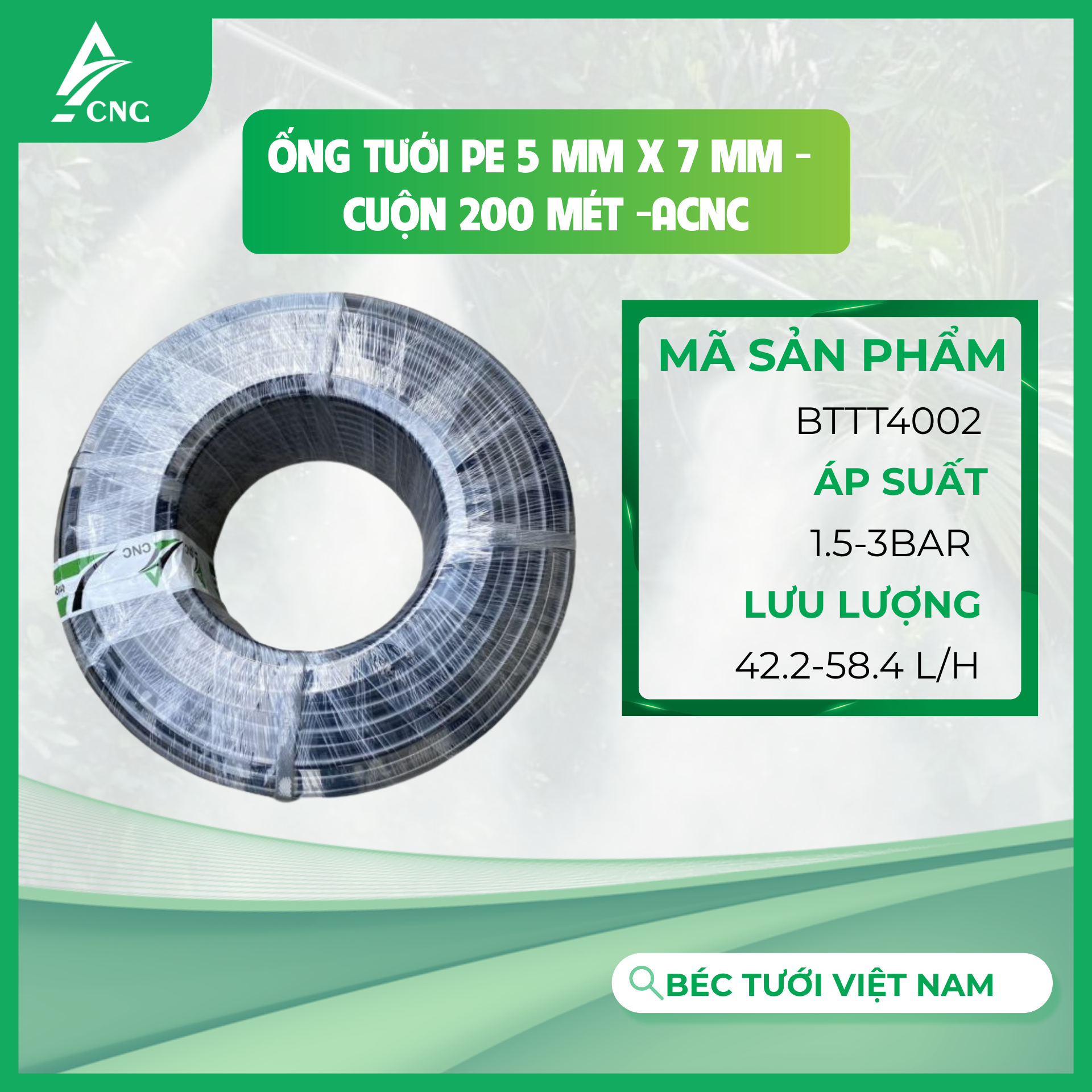 Ống tưới PE 5 mm x 7 mm – cuộn 200 mét -ACNC